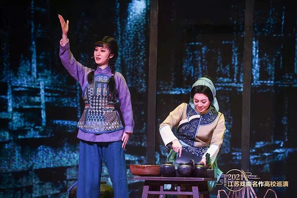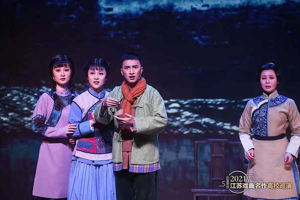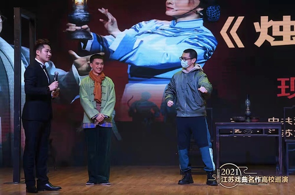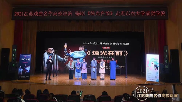 12月16日晚,由省委宣传部、省教育厅主办、校团委大学生艺术指导中心承办,常州市锡剧院创排演出的“2021年度江苏戏曲名作高校巡演”锡剧党课《烛光在前》在开云综合楼报告厅举办。