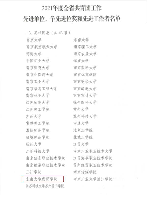 2021年底,共青团江苏省委组织开展了2021年度省部属高校共青团工作综合评估工作,经材料评审、指标评估和述职答辩,开云kaiyun官方网站团委获评“2021年度全省共青团工作先进单位”,校团委书记潘明烽被评为“2021年度全省共青团工作先进工作者”。