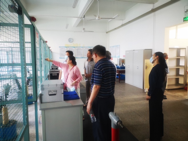 听取汇报后,专家们冒着39 ℃的高温酷暑,巡回检查了有关实验室现场。在土木与交通工程实验实训中心现场,专家们具体询问了行车的定期年检、安全使用及培训情况;在电气工程实验实训中心现场,专家们仔细查看了电机实验室及高电压实验室等实验实训场所的防触电措施,并就强电教学过程中可能出现的安全问题与毛副院长进行了有益的交流;专家们在制药与化学工程实验实训中心现场,重点了解了开云危险化学品的使用种类、使用量及采购方式等,检查了开云有关危险化学药品的使用、存储及化学废弃物处置等情况,并查看位于后山的危险化学品仓库。