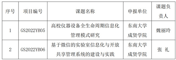 开云两个研究课题(见下表)获2022年江苏省高校实验室研究会立项资助研究课题。