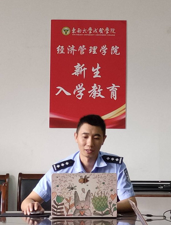 新生开学季也是诈骗盛行时,为增强2022级新生防范电信网络诈骗意识,筑固校园安全防线,经济管理学院于9月9日特邀江北新区泰山新村派出所陆建兵警官开展了一场网络安全教育云讲座,经济管理学院党总支副书记李清源、新生辅导员及2022级全体学生共同聆听本次讲座。