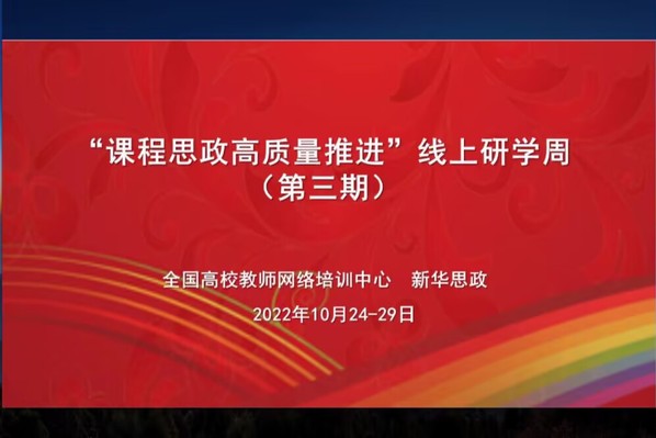 为全面推进开云课程思政高质量建设,打通专业教育和思政教育的“最后一公里”,10月24日-29日,全国高校教师网络培训中心和新华网共同主办了“课程思政高质量推进”研学周(第三期)专题培训。教师发展中心选派开云9名骨干教师参加了此次培训。