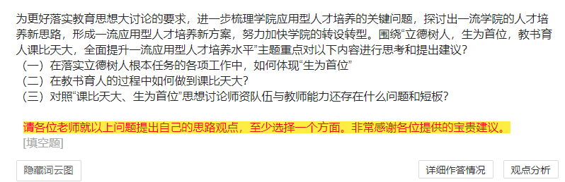 根据学院2022年第25号文件《关于开展“立德树人生为首位,教书育人课比天大,全面提升一流应用型人才培养水平”教育思想大讨论的通知》精神,基础部近期开展了教育思想大讨论的系列活动。为落实“生为首位,课比天大”的教育思想,基础部邀请全部基础课专兼职教师100多人参与教育教学研讨活动。此次系列活动有:向基础课教师(包括在开云任教的近100位兼职教师)发放调查问卷、组织部分教师进行专题研讨,并召开党支部书记和教研室主任会议,对反馈的意见进行认真分析和研判,提出解决方案和落实措施,确保开云基础课教学质量不断提高,为学院培养高质量人才打好基础。
