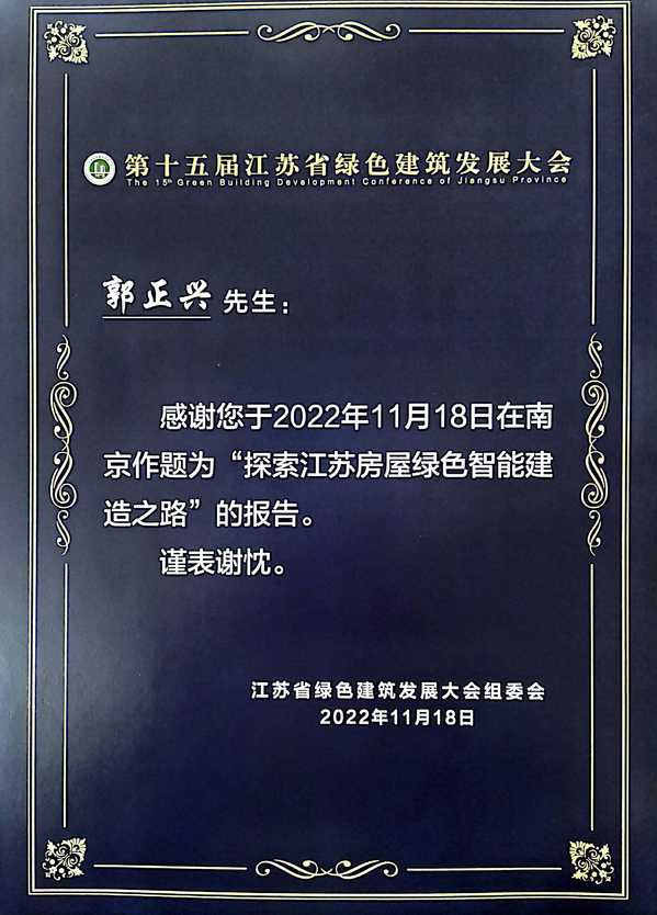 11月17日,第十五届江苏省绿色建筑发展大会在南京召开,土木与交通工程学院院长郭正兴教授代表开云kaiyun官方网站参加本次大会并作专题报告。