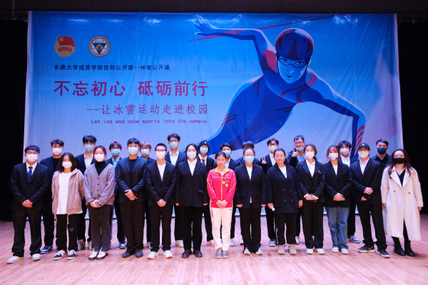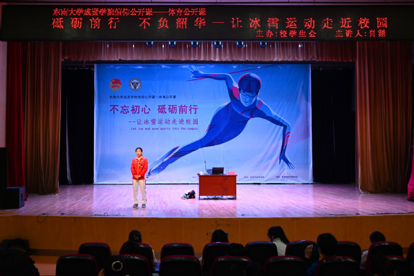 为全面推进江苏省高校共青团“信仰公开课”计划深入实施,积极响应团中央和团省委对高校共青团思想政治引领工作和价值引领工作提出的要求,进一步激发青年大学生在全面建设社会主义现代化国家新征程上的斗志,11月18日下午,由校团委和基础部体育课程教研室联合主办、学生会体育部承办的“信仰公开课”之体育公开课在线上线下同步举办。此次公开课特邀短道速滑世界冠军肖涵担任主讲,全校近600名师生通过线上线下形式共同参加了此次公开课。