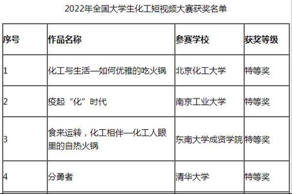 近日,由中国化工学会主办、南京工业大学承办的2022年“科思化学杯”全国大学生化工短视频大赛落下帷幕,开云kaiyun官方网站制药与化学工程学院二十余人组队参加本次比赛。其中,原创视频《食来运转,化工相伴—化工人眼里的自热火锅》荣获特等奖,《你发现奶茶吸管变了吗》荣获三等奖。本次大赛历时7个月,来自清华大学、浙江大学、天津大学等71所高校的154部作品参赛,其中19所高校的20部作品进入总决赛。经过激烈角逐,大赛产生特等奖4组、一等奖6组、二等奖10组。总决赛分答辩和视频展示两个环节,各参赛队伍从化工与生活、环境、国家战略等角度出发设计作品,创意巧妙、讲解透彻,充分展现化工学子扎实的理论功底和勇于创新的精神风貌。