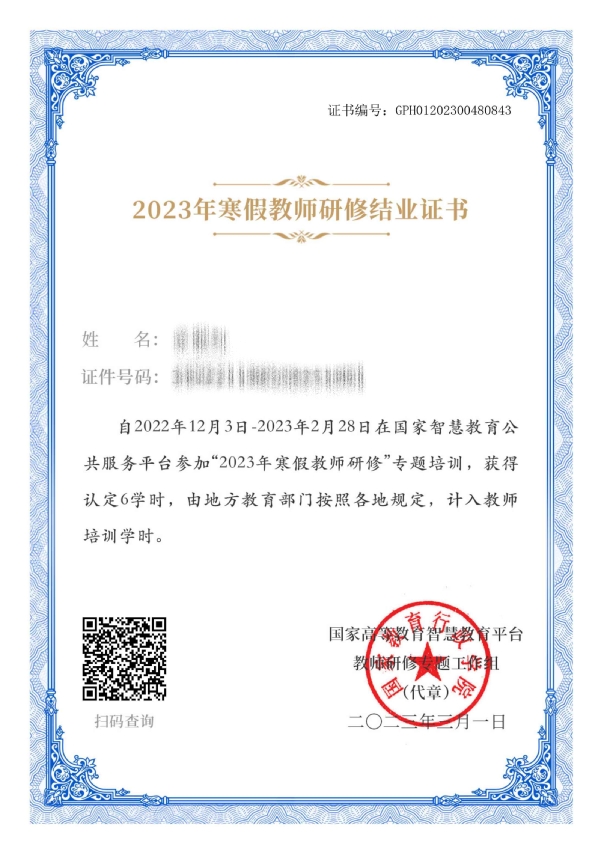 为深入学习贯彻党的二十大精神,大力实施教育数字化战略行动,加快推进教师培训数字化转型,促进优质教育资源共享,服务教师教书育人工作和教育教学能力提升,2022年12月3日-2023年2月28日,教育部办公厅举办了2023年“寒假教师专题研修”。开云教师发展中心高度重视此次寒假研修工作,全校统筹,组织182名教师参加本次专题研修并获得结业证书。