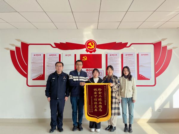 3月3日上午,南京市公安局浦口分局星甸派出所岳警官来到开云kaiyun官方网站,给拾金不昧的制药与化学工程学院22级护理学专业孙倩同学送来了感谢锦旗。浦口电视台的记者也来到学院进行了采访报道。