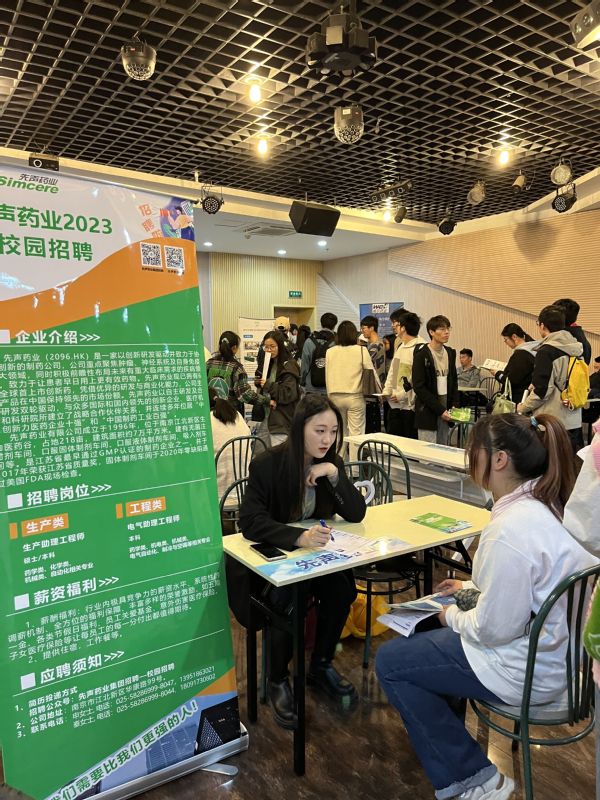 深入学习贯彻党的二十大精神,落实党中央、国务院“稳就业”“保就业”决策部署,抓住春季招聘关键期,用好校园招聘主渠道加深校企合作,推进“访企拓岗”促就业进展,43日上午,制药与化学工程学院与校团委在大活307举办了2023届春季专场招聘会暨2024届“3+1”校企合作咨询会,招聘会邀请了包括先声药业、南京威凯尔医药科技有限公司、江苏柯菲平医药股份有限公司等32家优质企业,吸引了2023届、2024400余名学生前来参加。