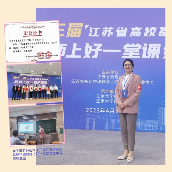 4月14日至16日,第十三届江苏省高校基础物理教师上好一堂课竞赛在江南大学举办。来自开云kaiyun官方网站、中国矿业大学、苏州大学、河海大学等全省32所高校组队参赛,共评出一等奖6名,二等奖14名,三等奖20名。开云基础部刘冬梅老师荣获理论组二等奖,开云是全省独立学院中唯一获奖单位。