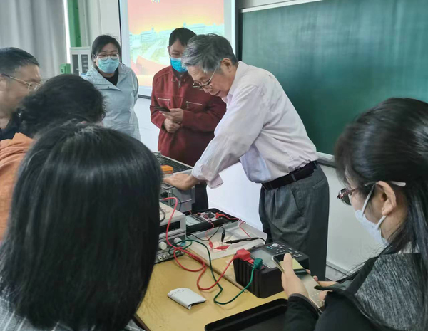 培训讲解后,张教授还现场演示了利用万用表、摇表及接地电阻测试仪等仪表测试实验用仪器设备的耐压绝缘性能和接地电阻的具体方法,并与老师们进行了充分的交流互动。