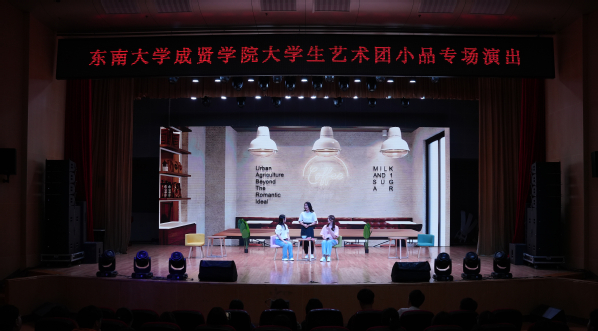 5月19日晚,由校团委、学生处、保卫处主办,大学生艺术指导中心话剧团演出的反诈教育小品专场演出在综合楼报告厅举行。团委书记、学生处副处长潘明烽,泰山街道辖区派出所民警陆建斌、保卫处老师及全校600余名学生生共同观看了此次演出。