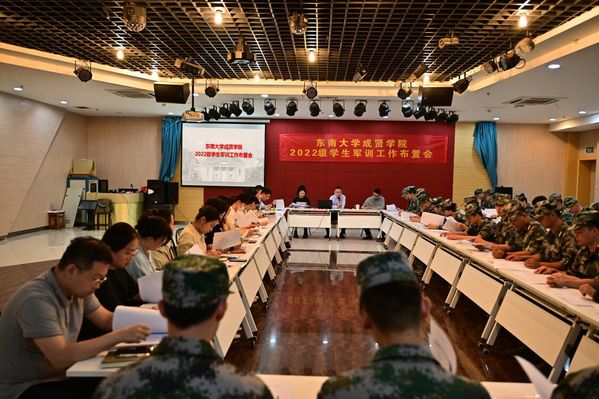 6月12日,2022级学生军训工作布置动员会在综合楼307和田径场举行,指导员、带训教官和全体学员参会,人武部部长潘明烽主持并作开训前工作布置和动员。
