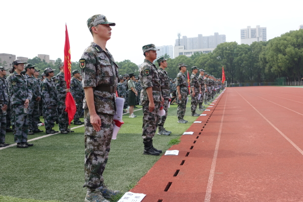 动员大会上,潘老师向2022级学生介绍了军事理论课程和军事技能训练安排,希望同学们深刻领会军训的重要意义,严明纪律,听从指挥,行动统一,闻令而动,拿出敢于战胜一切困难和挑战的气魄,以饱满的热情和高昂的斗志,出色完成训练任务,展示大学生朝气蓬勃和奋发向上的精神风貌,充分展现新时代青年的风采。希望带训教官要文明带训、科学施训,利用休息时间向同学们讲好军训故事,激发同学们的爱国热情,提高参训的积极性,展现青年学生担当。随后,军训团举行了授旗仪式,各中队对各连排进行了任务分配和场地对接,并将各连排带到指定场地进行训练。