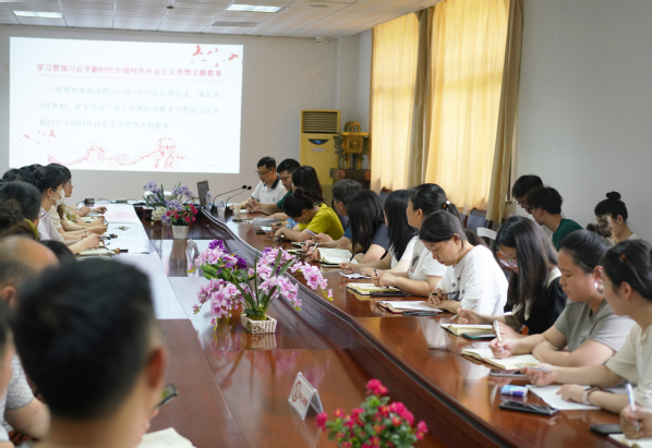 为扎实开展学习贯彻习近平新时代中国特色社会主义思想主题教育,6月21日下午,院党委副书记、副院长、纪委书记王荣讲授“以主题教育为契机,深入学习新思想,开拓创新谋新篇”专题党课。机关党总支学工党支部及全体辅导员参加这次党课学习。