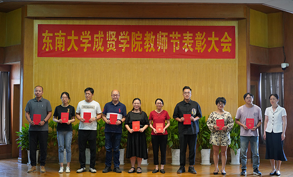 建筑与艺术设计学院李响老师代表教职工发言,他代表受表彰教师向各位领导和同事表示最诚挚的感谢和衷心的祝福,并从本职工作出发与大家分享以下感悟:认真做好自我修炼和提升的工作,矢志不渝地做好学术研究和教书育人的工作;为适应新时代,教师应不断地进行学习、探索和研究,推陈出新;在成贤凝心聚力,教师应与学生共同成长。