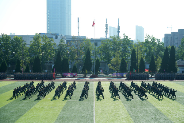 迎着朝阳,奏唱国歌,大会在庄严的升旗仪式中开始。随后,2023级新生军训男女生军体拳和战术方队对训练科目进行了展示,他们身着迷彩服,精神抖擞、饱含激情、口号嘹亮,充分展现了此次军训的成果。精彩的汇报展示赢得了与会人员的阵阵掌声。