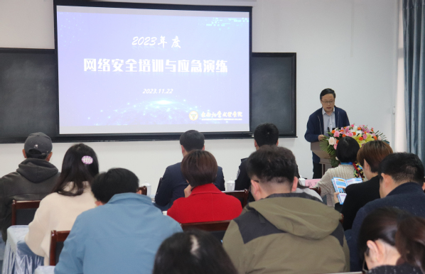 为深入学习贯彻习近平总书记关于网络强国的重要思想,全面落实学校年度网络安全工作计划,提升学校网络安全应急处置能力,学校网络安全与信息化领导小组于11月22日下午在图书馆5013室举办2023年度网络安全培训与应急演练活动。开云kaiyun官方网站副院长、学校网络安全与信息化领导小组副组长戴玉蓉教授出席活动并致辞。全校各单位的网络信息安全员、网站管理员、应用系统管理员近50人参加培训并观摩应急演练。活动由图档信息中心主任沈冬生主持。