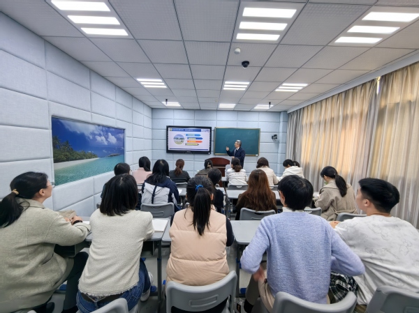 管平主任就大赛的基本情况、国赛通知要点、申请书填报、课程教学创新成果报告要点、课程教学大纲提炼、两个45分钟课堂教学设计和教案撰写、课堂实录注意事项以及校赛安排等八个方面给参训教师们做了详细指导。管主任以今年国赛通知为切入点,将今年国赛与去年国赛在主题、赛道、要求以及申报书等要求方面进行了详细对比分析。针对课程教学创新成果报告,管主任希望老师们能认真梳理提炼,以学生中心、产出导向、持续改进中体现创新点,聚焦“问题”,课程内容既要有理念高度,又包含实际案例同时还要有数据和证据佐证课程的成效。在教学设计、教案或讲稿中,他提醒老师们要注重教学目标、教学内容、教学策略以及教学评价等四个基本要素,准确表述知识目标、能力目标、素质目标三位一体的教学目标;注重教学内容的重构及优化;将信息技术与课堂教学进行深度融合,既有师生互动又有生生互动的设计,同时将思政元素有机融合进教学内容,从而使我们的课程内容有特色,有新意。管主任强调,大赛的申报书、创新报告、教学大纲、教学设计、课程讲授之间一定要环环相扣,相互印证,突出“创新”。随后,多媒体教室管理室主管冯汝岗向参训教师介绍了微格教室的各项设备、软件、使用流程、方法与技巧等,并现场面对面交流辅导,一对一答疑解惑。