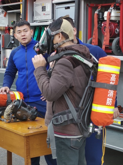 南京消防救援支队高新大队孟凯详细介绍了家庭、办公室、实验室、公共场所等不同场景下火情发生的起因及过程,普及了相关预防知识及进行初期处置的方法,阐述了预防为主、防消结合的理念。演练现场设置了穿戴装备、救援装备、灭火实操三个功能体验区,现场教工在消防队员的引导下至各体验区进行了实际操作。通过亲手操作液压及切割等救援装备,穿戴消防战斗服及空呼,使用干粉灭火器灭火的多重亲身体验,增强了教工的代入感与实操感,提高了正确使用消防器材、处置初期火情及逃生自救的能力。