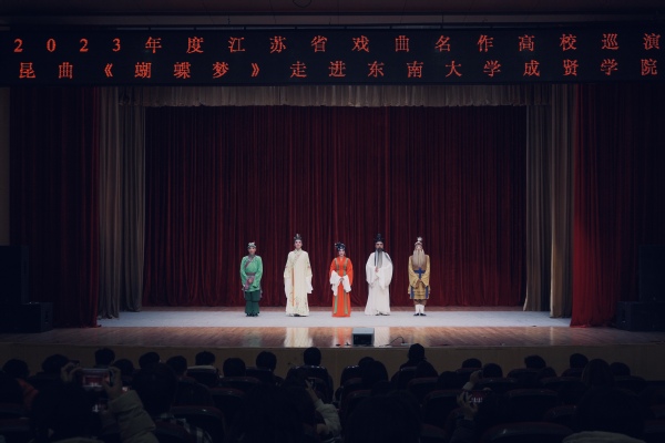 12月6日晚,由省委宣传部、省教育厅主办,校团委大学生艺术指导中心承办,江苏省演艺集团昆剧院创排演出的2023年度江苏戏曲名作高校巡演昆剧《蝴蝶梦》在开云综合楼报告厅举办。全校师生700余人共同观看了此次演出。
