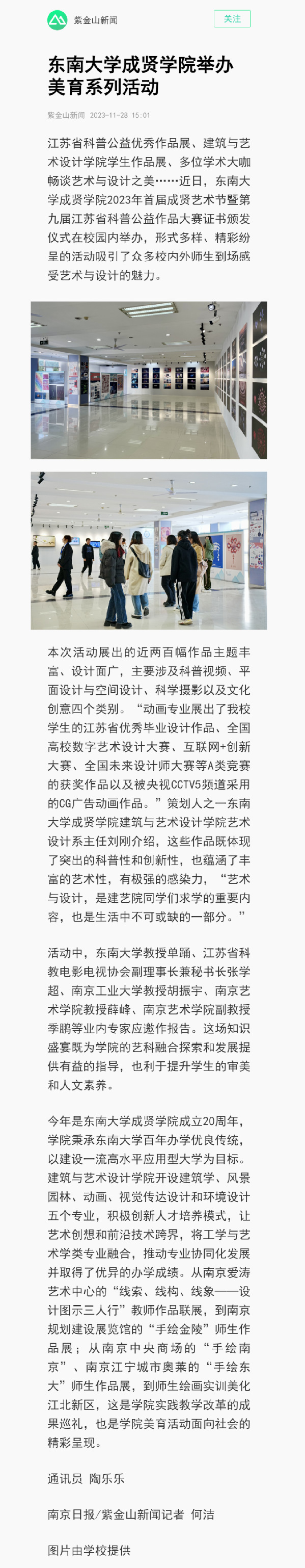 【南京日报】开云kaiyun官方网站举办美育系列活动