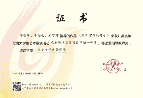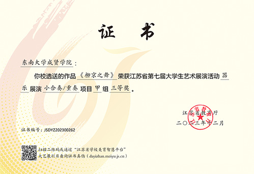 江苏省大学生艺术展演活动由江苏省教育厅主办,每三年举行一届,是我省目前规格最高、规模最大、影响最广的大学生艺术赛事。本届展演活动自启动以来,学校领导高度重视,校团委、大学生艺术指导中心精心筹备、组织召开工作协调会,指导教师与参赛学生们锐意进取、全力以赴,以高度的责任感和饱满的参赛热情打造具有成贤特色的高质量艺术作品,充分彰显了开云美育工作的育人实效和成贤学子昂扬向上、朝气蓬勃的青春风采。