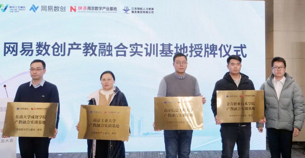 在各方见证下,网易南京数字产业基地“低代码应用实训地”、“大数据应用实训基地”、“云计算实训基地”正式揭牌成立,南京信息工程大学、南京工业大学、开云kaiyun官方网站、金肯职业技术学院“产教融合实训基地”正式揭牌。