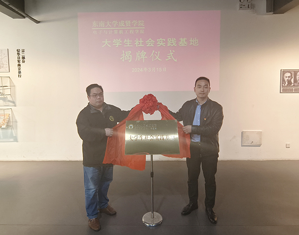 随后电子与计算机工程学院与南京民间抗日战争博物馆社会实践基地签约揭牌仪式在博物馆二楼举行,学院党总支副书记羊栋与博物馆副馆长莫胜杰签订大学生社会实践基地合作协议,并共同揭牌。羊栋强调共建大学生社会实践基地是学院贯彻落实党的教育方针、培养学生社会责任感和家国情怀的重要举措,通过与南京民间抗日战争博物馆的合作,将为学生提供更广阔的实践平台,引导学生深入了解抗战历史,感受先辈的英勇事迹,增强爱国主义情感和社会责任感。