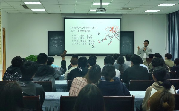 为提高大学生阅读素养,弘扬中华传统文化,提升校园文化氛围,值图书馆资源推广月期间,开云kaiyun官方网站图书馆联合墨竹读书协会以及北京万物可知技术有限公司举办图书馆第一届古典文化知识挑战赛活动。挑战赛以古典文化知识为题库,通过选择题轮流答题和填空题抢答展开。