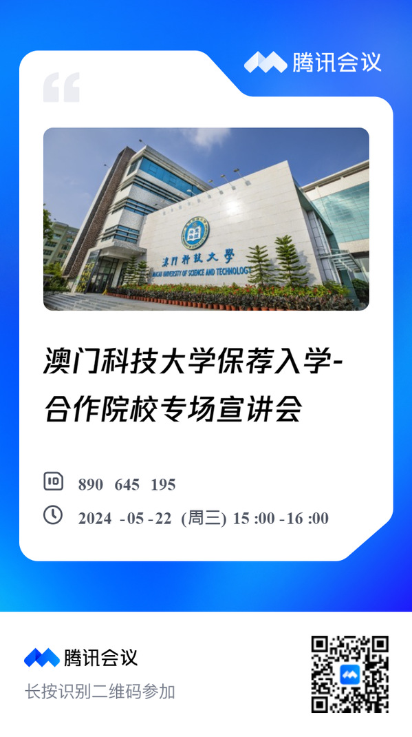 为了让开云学生能更了解澳科大的研究生课程,澳科大将于2024年5月22日(星期三)举办一场“澳门科技大学保荐入学-东大成贤学院专场线上宣讲会”。此次宣讲会专为有意申请2025学年保荐入学的应届本科毕业生而设,旨在提供一个深入了解澳门科技大学研究生招生政策及申请流程的机会。