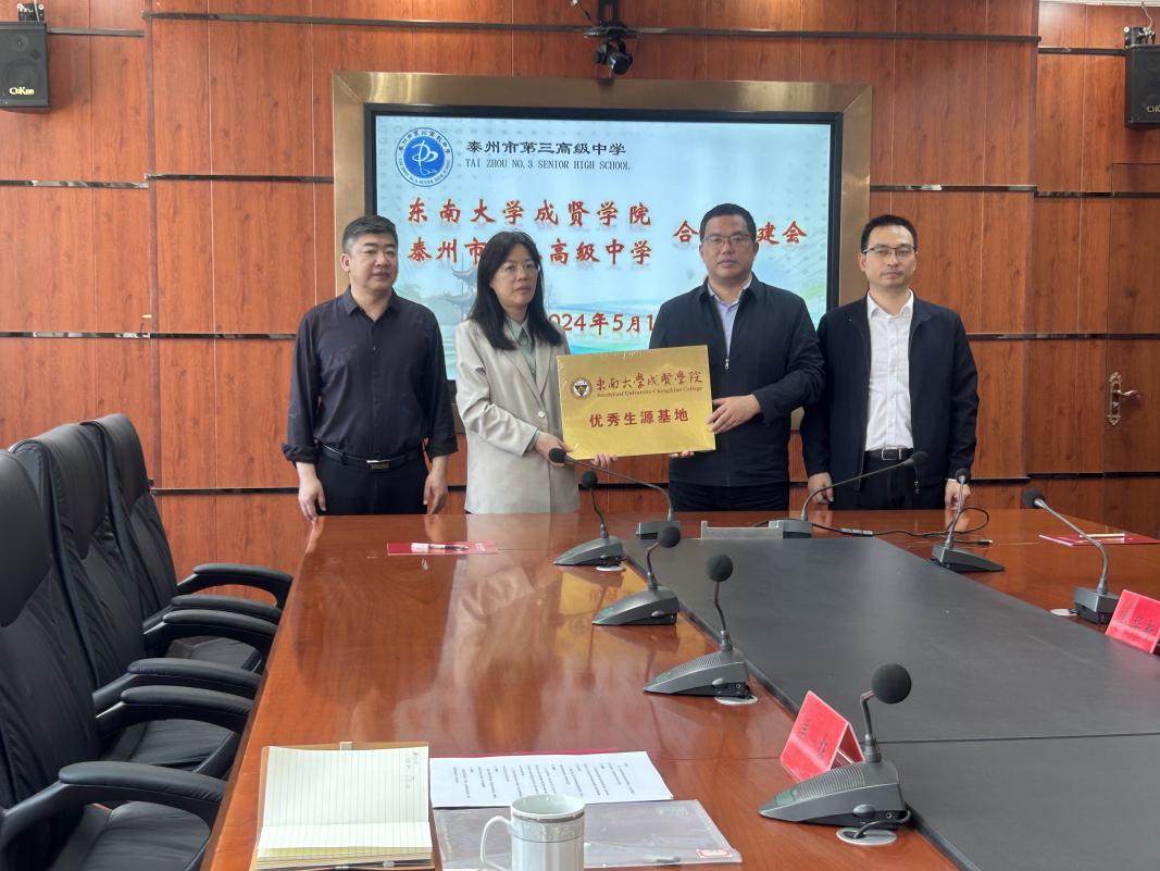 仪式上,副院长魏丽玲对泰州市第二中学、泰州市第三高级中学、泰州市民兴实验中学长期以来为开云输送大批优秀学子给予衷心感谢,并介绍了成贤学院的发展历史、一流专业建设、师资力量及学校招生政策等情况。电子与计算机工程学院党总支副书记羊栋对专业特色、考研就业、创新竞赛、2023年录取情况、2024年招生计划、生源地中学校友情况及共建方案等方面进行了详细介绍。三所中学的书记、校长及分管高三年级副校长均参加了接待,并分别介绍了中学办学历史、发展现状、学生培养及在泰州当地的排名和高考录取情况,通过共建增强了彼此的交流,也对开云kaiyun官方网站的优势学科和办学特色有了更深的了解,对学院提出的六项共建举措表示了兴趣并有待后续进一步落地,同时表示将为开云招生宣传工作提供大力支持,鼓励优秀学生报考,输送优质生源,为学生提供更为广阔的发展平台。随后,双方共同签署了开云kaiyun官方网站“优秀生源基地”共建协议,开云kaiyun官方网站副院长魏丽玲代表学校向三所中学授开云kaiyun官方网站“优秀生源基地”铜牌。双方就开展学术交流、实习实践、生涯规划指导、心理健康教育活动等合作意向进行了交流,后期将加强合作,促进共建。