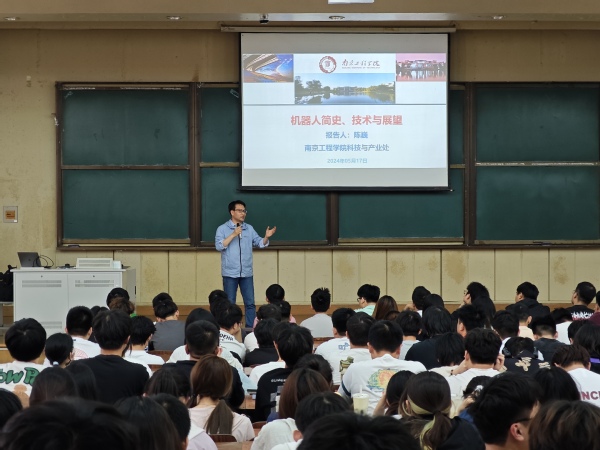 5月17日,电子与计算机工程学院特邀南京工程学院科技与产业处副处长陈巍教授在华罗庚馆101教室开展“机器人简史、技术与展望”主题讲座。讲座由电子与计算机工程学院党总支副书记羊栋主持,学院三百余名师生聆听本次讲座。