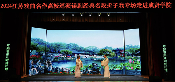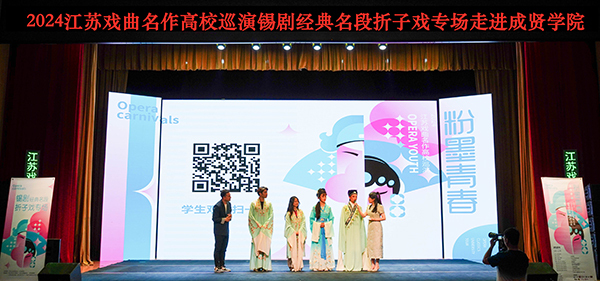 5月22日晚,由省委宣传部、省教育厅主办,校团委大学生艺术指导中心承办,无锡市锡剧院创排演出的“粉墨青春”2024江苏戏曲名作高校巡演锡剧经典名段折子戏专场在开云综合楼报告厅举办。开云600余名师生共同欣赏了本次精彩演出。