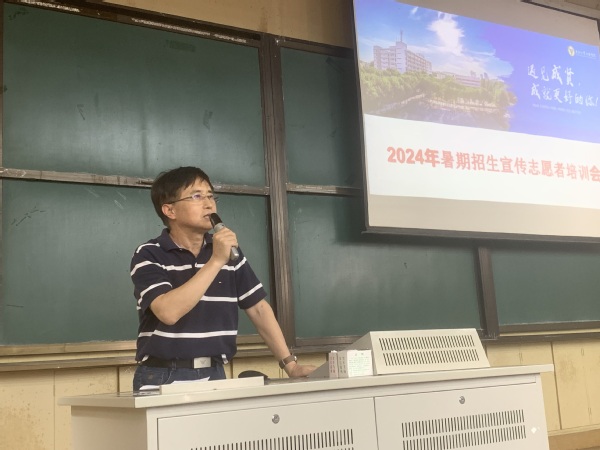为激发学生们参与社会实践活动的热情,助力学校2024年招生宣传工作顺利开展,6月17日下午,2024年招生志愿者培训会在华罗庚馆101室隆重举行,500余名招生志愿者参与本次培训。会议由经济管理学院鲍泽昊老师主持。