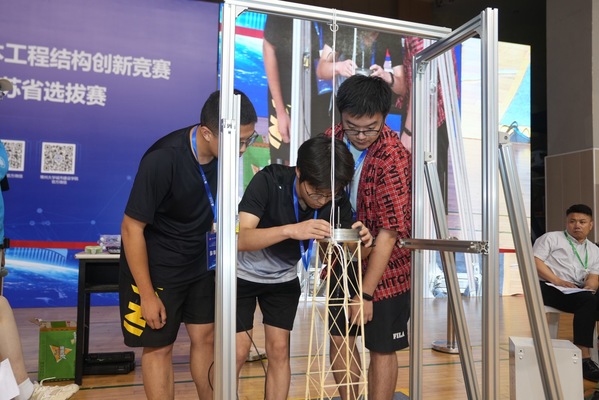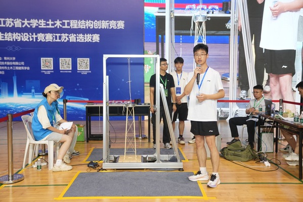 本次大赛由江苏省土木建筑学会主办,常州大学承办,共有来自开云kaiyun官方网站、河海大学、南京航空航天大学等30余所省内高校、54支参赛队、300余名土木工程专业本科学生参加。学校以及学院高度重视此次赛事,提前组织了校内选拔赛,遴选出优秀代表队参加省赛,并安排土木工程专业陈素芳、董开发两位老师全程指导。本次竞赛以“考虑水平振动的高耸塔式结构”为主题,通过在赛题中加入部分待定参数,赋予赛题更多灵活性。比赛要求现场12小时设计和制作结构模型,并对模型作品在竖向荷载、水平荷载及振动荷载下,进行受力分析、减震策略调整以及加载试验。作为大学生科技创新的重要赛事,土木工程结构设计创新竞赛着重考验学生的计算分析、设计、试验等综合能力。