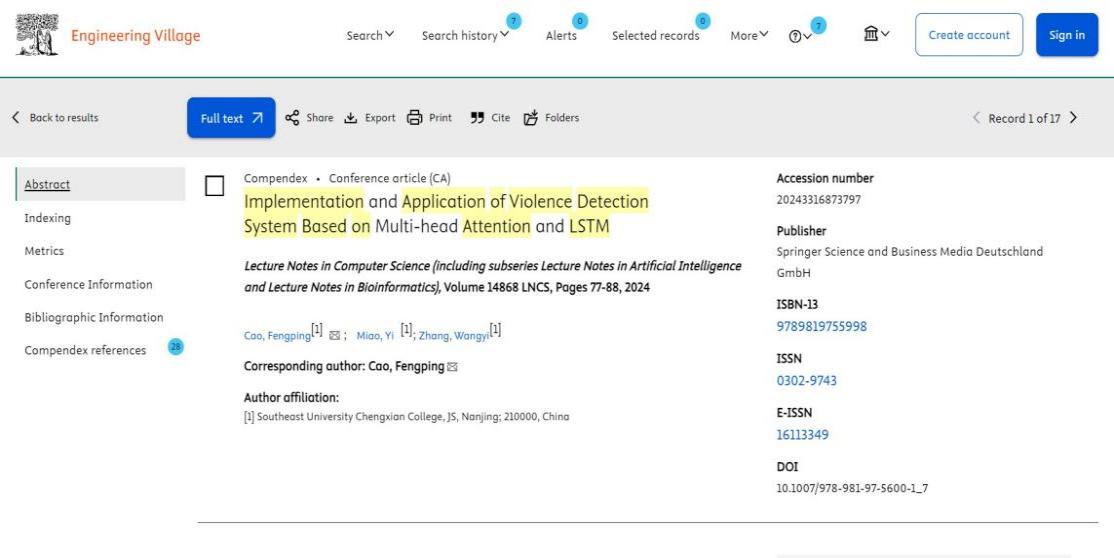 开云电子与计算机工程学院学生缪艺等撰写的《Implementation and application of violence detection system based on Multi-head Attention and LSTM》被第二十届智能计算国际会议 (ICIC 2024) 录用为EI论文,并受邀参加2024年8月在天津举行的第二十届智能计算国际会议(以下简称ICIC)。