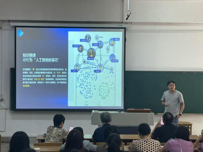 在第二阶段,物理教研室主任白磊结合大学物理课程,详细介绍了知识图谱的构建及知识图谱在课程教学中的应用。英语教研室主任谭艳珍介绍了英语一流课程建设的情况、体会和经验。