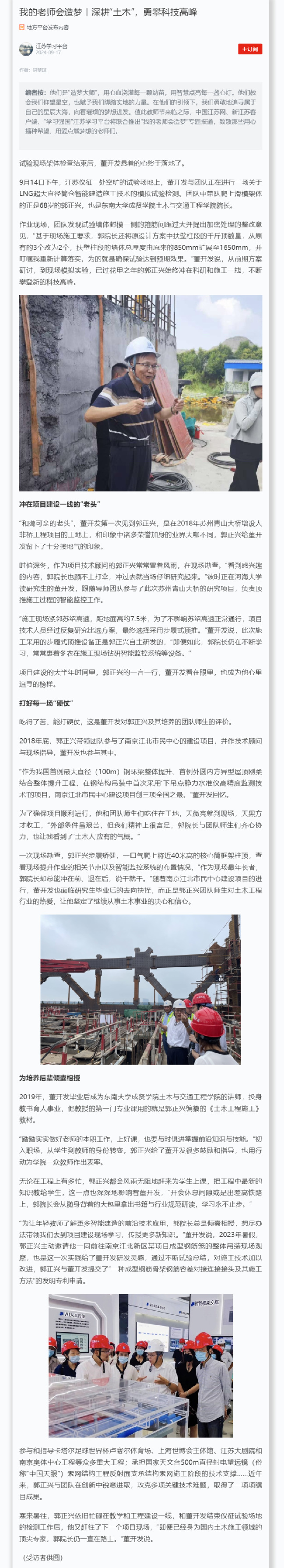【学习强国/江苏学习平台】我的老师会造梦丨深耕“土木”,勇攀科技高峰