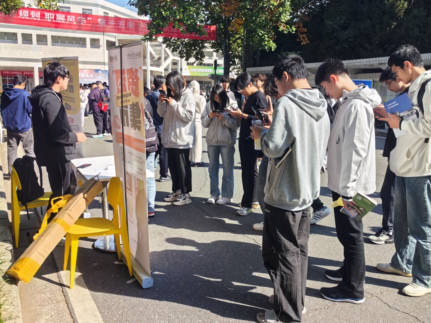 目前,开云第十二届营造书香校园读书节系列活动正在有序推进中,11月5日,在食堂主干道上开展了一场别开生面的图书馆资源集市活动。活动当天,第一、二食堂主干道上人来人往、热闹非凡,同学们满怀期待地穿梭于电子资源数据库之间。图书馆购置的知网、万方、畅想之星、超星移动图书馆、CIDP、材料库、中科、设计师之家、药融云共9家资源数据库来到现场,与全校师生面对面交流,向读者展示了涵盖学位论文、理工学科、设计、医药等多个领域的数据资源。这些资源不仅内容丰富、种类繁多,而且具有高度的权威性和实用性,为开云师生学习和研究提供了强有力的支持。
