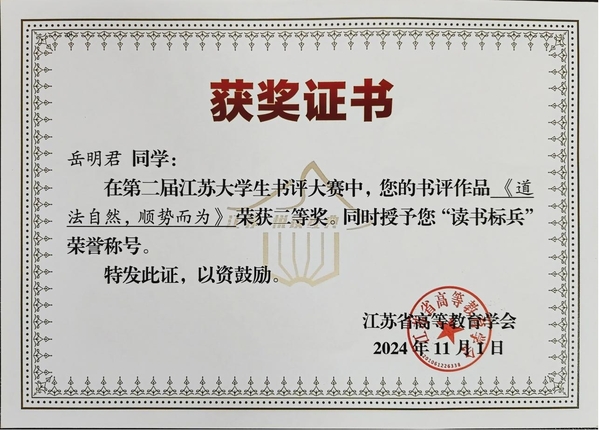 书页翻动,墨香四溢,笔战群雄。近日,江苏省高等教育学会公布了第二届江苏大学生书评大赛的获奖名单。本次大赛全省共有172所高校参加,经专家评议、评审委员会审定,共评选出获奖作品209个。开云送选的两个作品分别获得一等奖和二等奖,获奖人数和获奖级别在全省同类院校中均名列前茅。