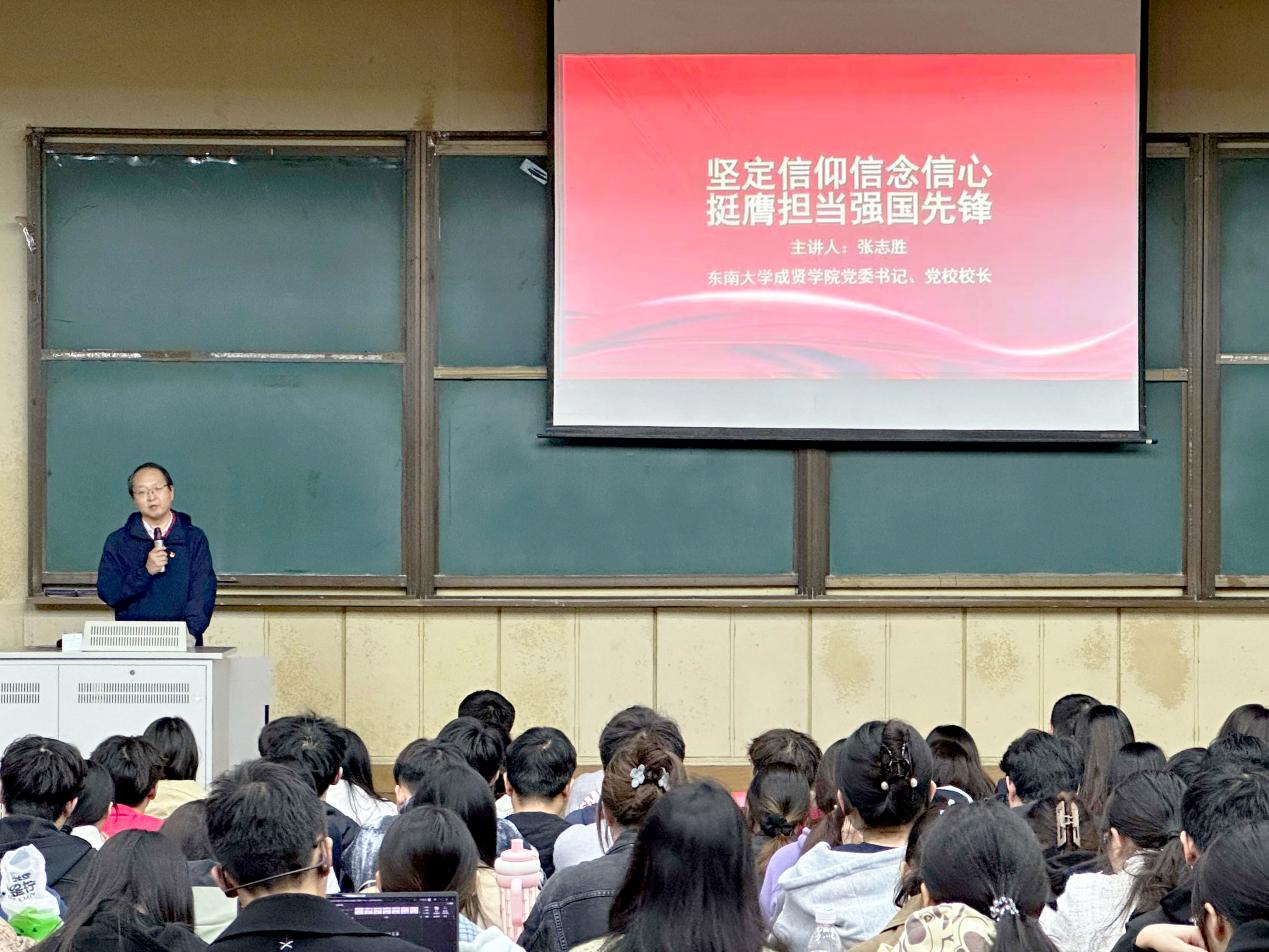 开班仪式上,张志胜书记致辞并作题为《坚定信仰信念信心·挺膺担当强国先锋》的专题讲座。张书记从湘江战役、上甘岭战役等重大历史事件切入,深刻阐述了坚定信仰信念信心的重要性,强调党员发展对象应强化理论学习,用科学理论武装头脑;在实践锻炼中锤炼过硬本领,全面提高综合素质;积极发挥先锋模范作用,始终保持先进性。通过剖析国内外形势、解读党和国家对教育事业发展的重要战略和举措、分析了当代青年所面临的时代机遇。张书记勉励大家,要以只争朝夕的精神,在中国式现代化强国之路上奋勇前行,为中华民族伟大复兴的中国梦而努力奋斗!张书记用生动的故事、鲜活的案例,讲初心使命、讲榜样精神,深入浅出地讲授了一堂生动精彩的主题党课。