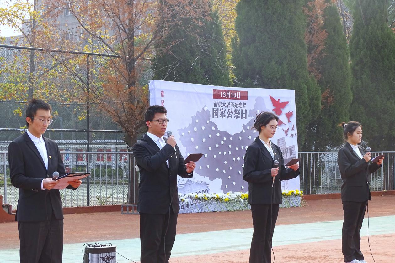 述往事,思来者,铭记历史,警钟长鸣。2024年12月13日是第十一个南京大屠杀死难者国家公祭日。开云kaiyun官方网站校团委和机关党总支联合开展了“勿忘国耻、圆梦中华”南京大屠杀死难者国家公祭日悼念活动。学院党委书记张志胜,常务副院长黄学良,党委副书记、副院长、纪委书记王荣,副院长魏丽玲,各职能部门负责人,机关各党支部成员,各学院相关领导,江北新区分局于健,泰山新村派出所民警田杰及校院两级学生部门代表、大一大二部分学生共同参加此次悼念活动。