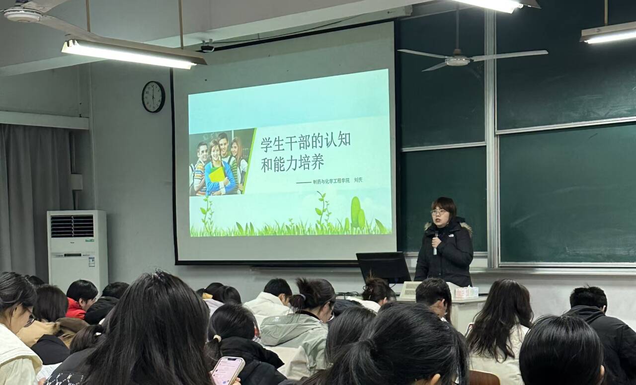 12月11日,为提升学生干部的思想政治素养和工作能力,增强其责任感与使命感,制药与化学工程学院分团委书记刘庆以“学生干部的认知和能力培养”为主题开展讲座。刘老师对学生干部如何规划大学生活,充实大学时光和发展自我融入社会进行了阐释,逐一分析了学生干部素养能力形成的路径,也为学生干部如何计划学习和工作提出了创造性的建议,学员们对此感到受益颇丰。