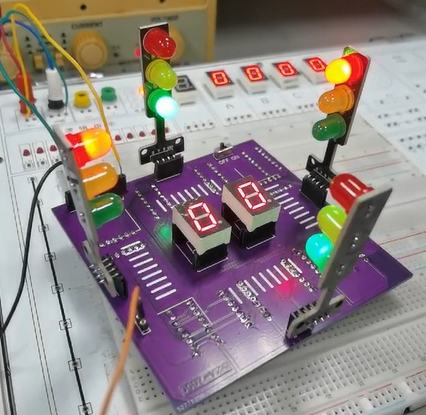 简易交通信号灯的设计与实现,首先需要同学们设计方案,针对设计的方案进行仿真分析,在仿真结果正确的情况下进行硬件实物的购买和焊接。学生们实现的方案多种多样,包含使用实验箱搭接完、数电实验板搭接,以及制作PCB板焊接完成的(如下图)。针对学生完成情况,以及现场完成情况,老师的评分考核也是过程化,实现更准确地体现学生的真实学习情况。