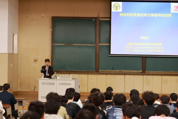 郭立新教授先后在南京大学、日本国家材料研究所和日本大阪大学等单位从事纳米材料、石墨烯、薄膜、储能和光催化材料等的科学研究工作。讲座中郭教授先深入浅出向同学们介绍了纳米材料的发展、独特性能及其发展并重点总结了纳米材料在电力装备中的应用。他通过与同学的互动交流为同学们展现了纳米材料是如何推动材料科学的革命性进步以及其在电力装备中展现的巨大潜力。此外,他还指出尽管纳米材料在电力装备中展现出巨大潜力,但仍面临长期稳定性不足、标准化体系不完善等挑战,鼓励同学们能够深入研究。