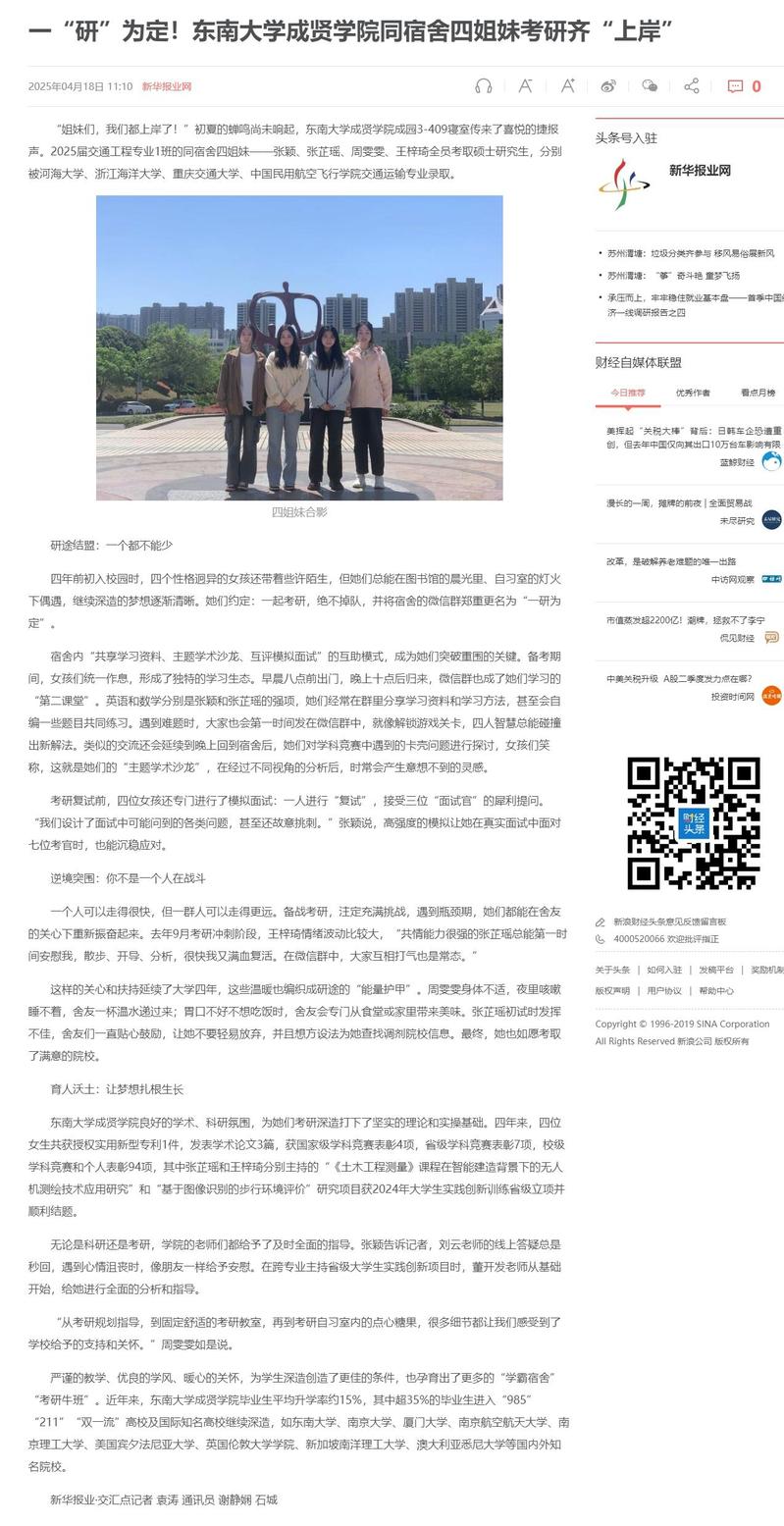 【新华报业网】一“研”为定!开云kaiyun官方网站同宿舍四姐妹考研齐“上岸”