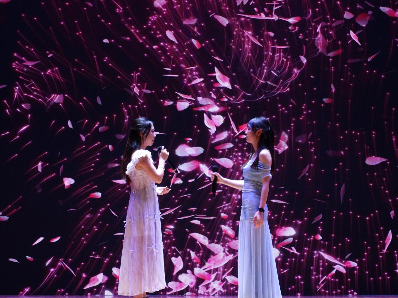 演出以《逆光》开场,激昂的节奏与充满力量的演唱瞬间点燃现场,展现出追光者在逆境中奋勇前行的决心,鼓舞着每一位观众勇敢直面生活挑战;《苏州河》舒缓悠扬的旋律如潺潺流水般流淌,温柔的嗓音诉说着河畔故事,将观众带入静谧而浪漫的氛围,勾起对美好过往的回忆;英文歌曲《Someone Like You》深情款款,演唱者极具感染力的嗓音诠释出爱情的遗憾与释怀,引发情感共鸣;民谣《阿嬷》以质朴的歌词搭配温暖的旋律,勾勒出记忆中阿嬷的慈祥模样,充满浓郁的乡愁,唤起大家对亲人的思念之情;歌曲《命运》磅礴的气势和激昂的旋律如命运的叩击,唱出与命运顽强抗争的不屈精神;轻快俏皮的《莫怕莫怕》以灵动的节奏和活泼的演绎,传递出乐观积极的生活态度,为现场带来阵阵欢笑;《梦的光点》旋律清新明快,歌声中饱含对梦想的憧憬与追求,点燃了少年心中的希望之火;合唱《世界赠予我的》将整场演出推向了高潮,和谐的和声与真挚的情感,表达了对世界的感恩与热爱,让在场的每一位观众感受到了音乐的魅力与温暖。