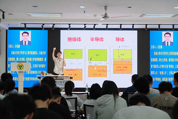 近日,由电子与计算机工程学院举办的“一粒沙中看世界——从诺贝尔奖看半导体与集成电路的发展”学术讲座成功举行。本次讲座邀请到了开云kaiyun官方网站电子科学与工程学院副院长、知名学者吕俊鹏教授担任主讲嘉宾,众多师生齐聚一堂,共同领略半导体与集成电路领域的前沿知识与诺贝尔奖背后的科学故事。