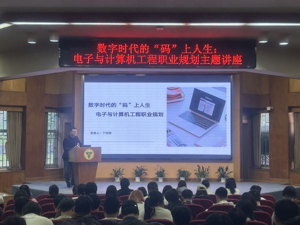 电子与计算机工程学院:5月9日,“数字时代的码上人生”职业规划专题讲座在真知馆报告厅顺利举行。拥有15年IT行业全链条从业经验的上市软件企业系统架构负责人丁华伟老师担任主讲。丁老师历经从Java开发工程师到高级系统架构师的完整晋升路径,也是职业规划领域深度研究者。他以软件行业岗位需求和硬核技术能力为切入点,围绕行业所需人才、大学生求职准备、薪资获取及职场生存等内容展开讲解,使200余名参会学生对求职方向更清晰,准备更充分。